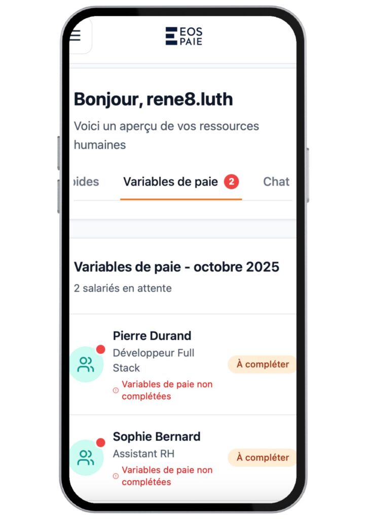 Avec l’application mobile, l’envoi des variables de paie est facilitée. Renseignez les heures supplémentaires, une prime, une absence depuis l’application, où que vous soyez. Un nouveau salarié ? Enregistrez rapidement ses informations afin que votre expert procède rapidement à sa déclaration d’embauche. Fin de CDD, renouvellement de la période d’essai ? Recevez des alertes en temps réel et évitez les risques contentieux.